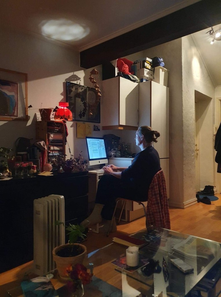 ….jeg er for øyeblikket blant annet opptatt med prosjektet jeg kaller Emosjonell løping. Det er et arbeid som går over tid. Hver dag, eller så ofte jeg kan, løper jeg en fast løype gjennom Botanisk hage på Tøyen i Oslo, som ligger i nærheten av leiligheten min kjæreste og jeg leier. Gjennom Emosjonell løping er jeg en del av en felles koreografi, med alle andre som også løper eller går gjennom parken, enten de vet det eller ikke, koreografert av trærne, og fuglene, og mosen og gresset, og så videre. Gjennom bevegelsene kommuniserer vi, og hver runde gjennom hagen er en visning. Slik har jeg flere hundre visninger i året, og kan dokumentere høy kunstnerisk aktivitet.